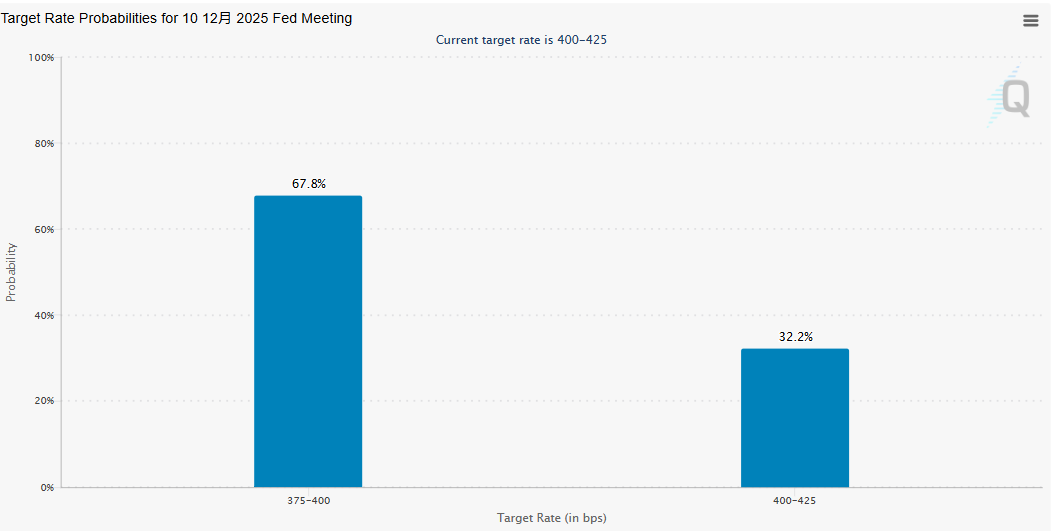 根据芝商所的美联储观察工具显示,利率市场交易员最新预计美联储在12月份降息的可能性约为65%,远低于周二的约90%——这表明交易员们已经收到了美联储主席鲍威尔发出的信号,即12月降息并非板上钉钉“”。但他们同时也仍然认为,届时降息的可能性要略大于不降息。
